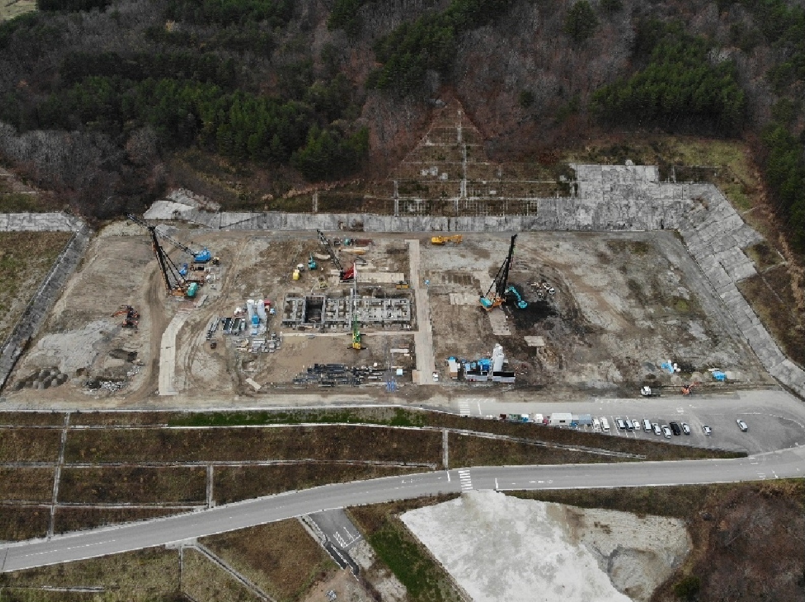 飯舘みらい発電所 建設工事の進捗情報(11月末時点)です。 発電所の建設工事はエリアごとに工事内容が異なっていますが、 発電所にとって重要な設備のタービンを据え付ける建屋の鉄筋工事が始まり、 建物の姿が少しずつ立ち上がってきました。 安全第一で工事を進めていきます。